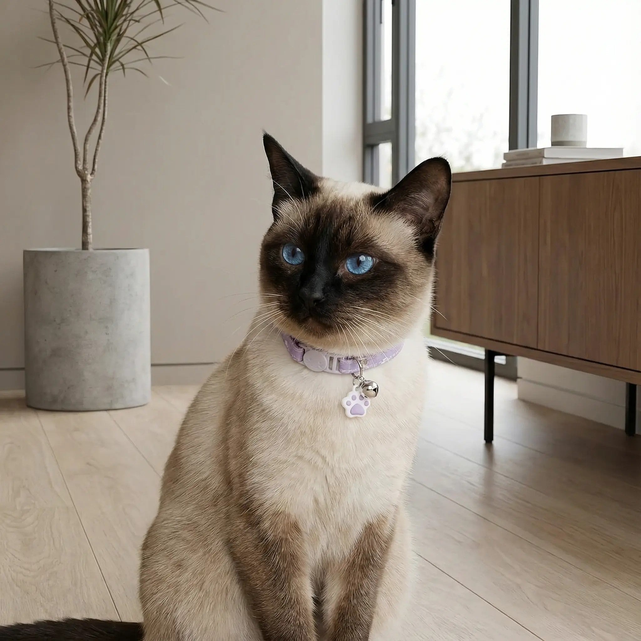 Si tienes un gatito, sabes lo rápido que desaparecen por casa… y lo fácil que es preocuparse. Este collar está pensado para lo esencial: que tu mascota vaya cómoda, con un toque adorable, y con un cierre seguro que se libera si se engancha.