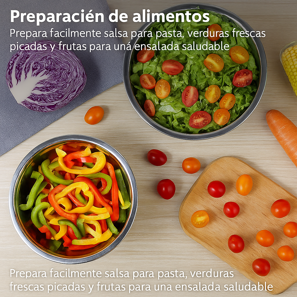 ✔️ Versatilidad total: ideales para hornear, mezclar ensaladas, preparar frutas, vegetales, salsas o cualquier receta que imagines.