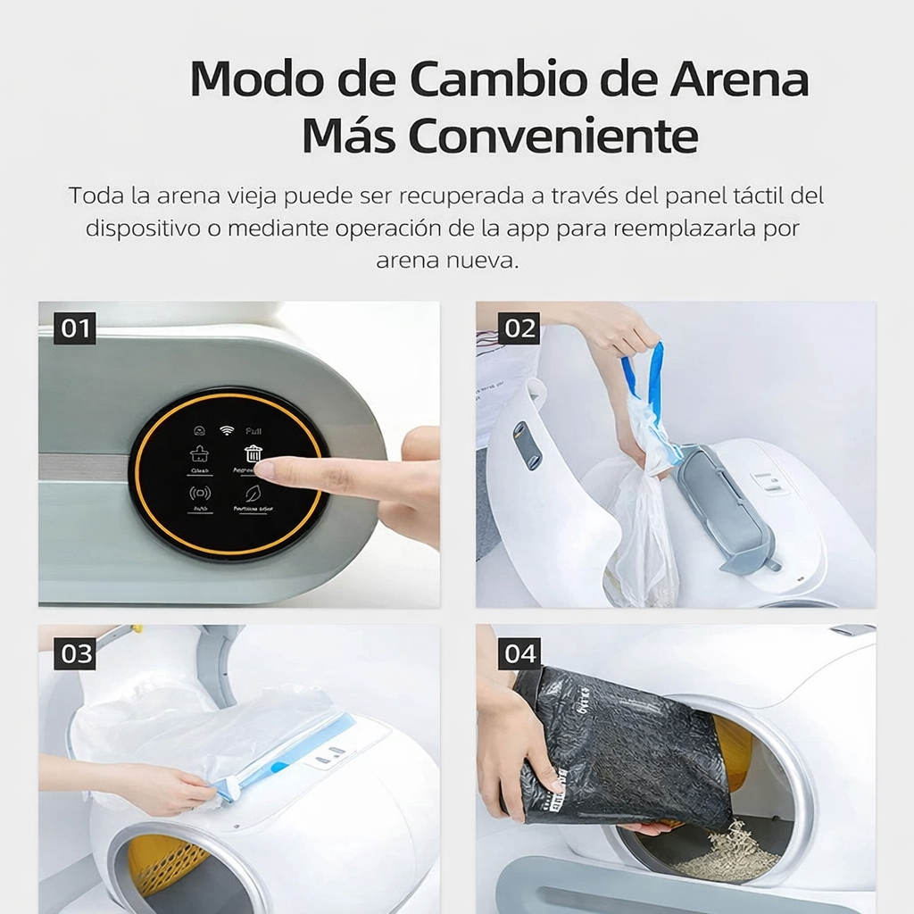 Si tienes gato, lo sabes: el arenero no “solo se usa”… se mantiene. Olores, arena fuera, limpieza diaria y esa sensación de que siempre toca hacerlo “ahora”. Con este arenero inteligente, el trabajo pesado lo hace él: tú solo supervisas desde el móvil y disfrutas de una casa más limpia y fresca, sin estar pendiente cada día.