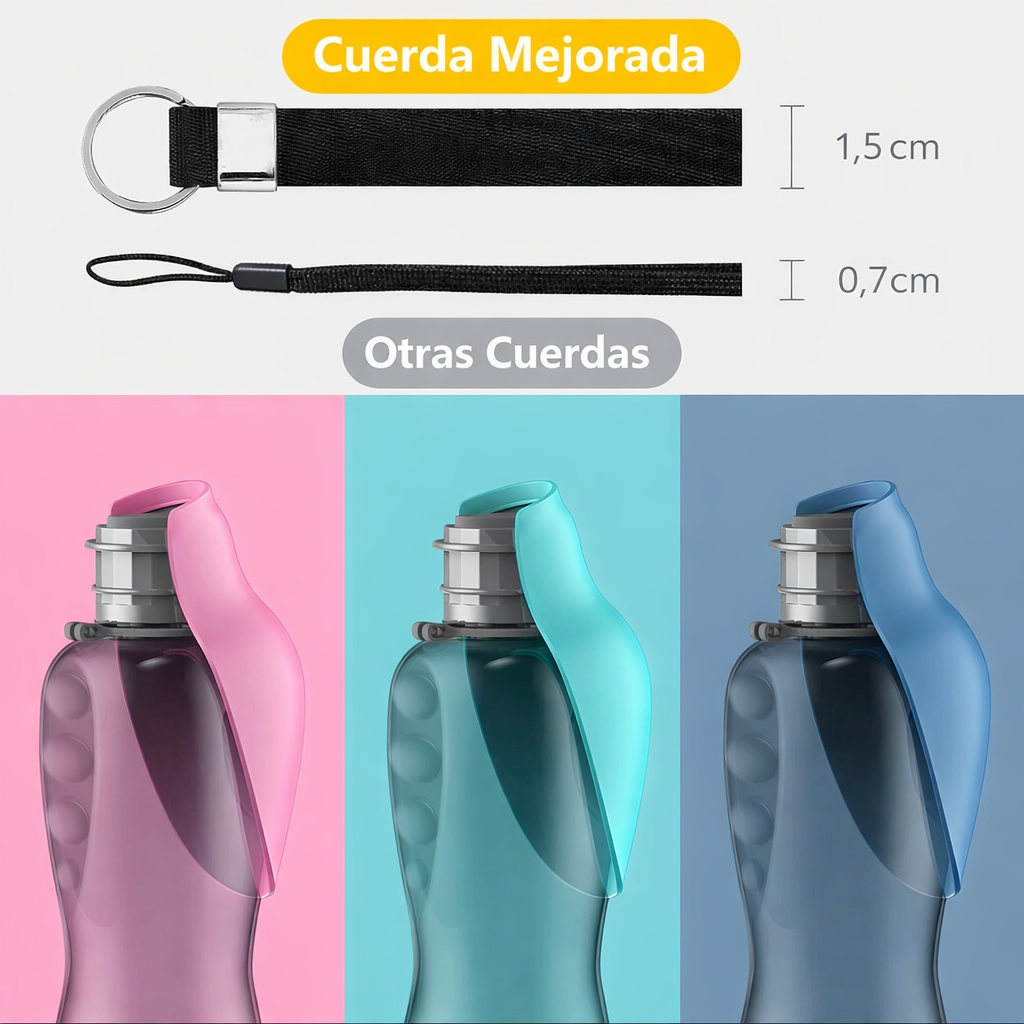 Botella portátil de 800ml con cuenco incorporado para hidratar a tu mascota en cualquier lugar.
