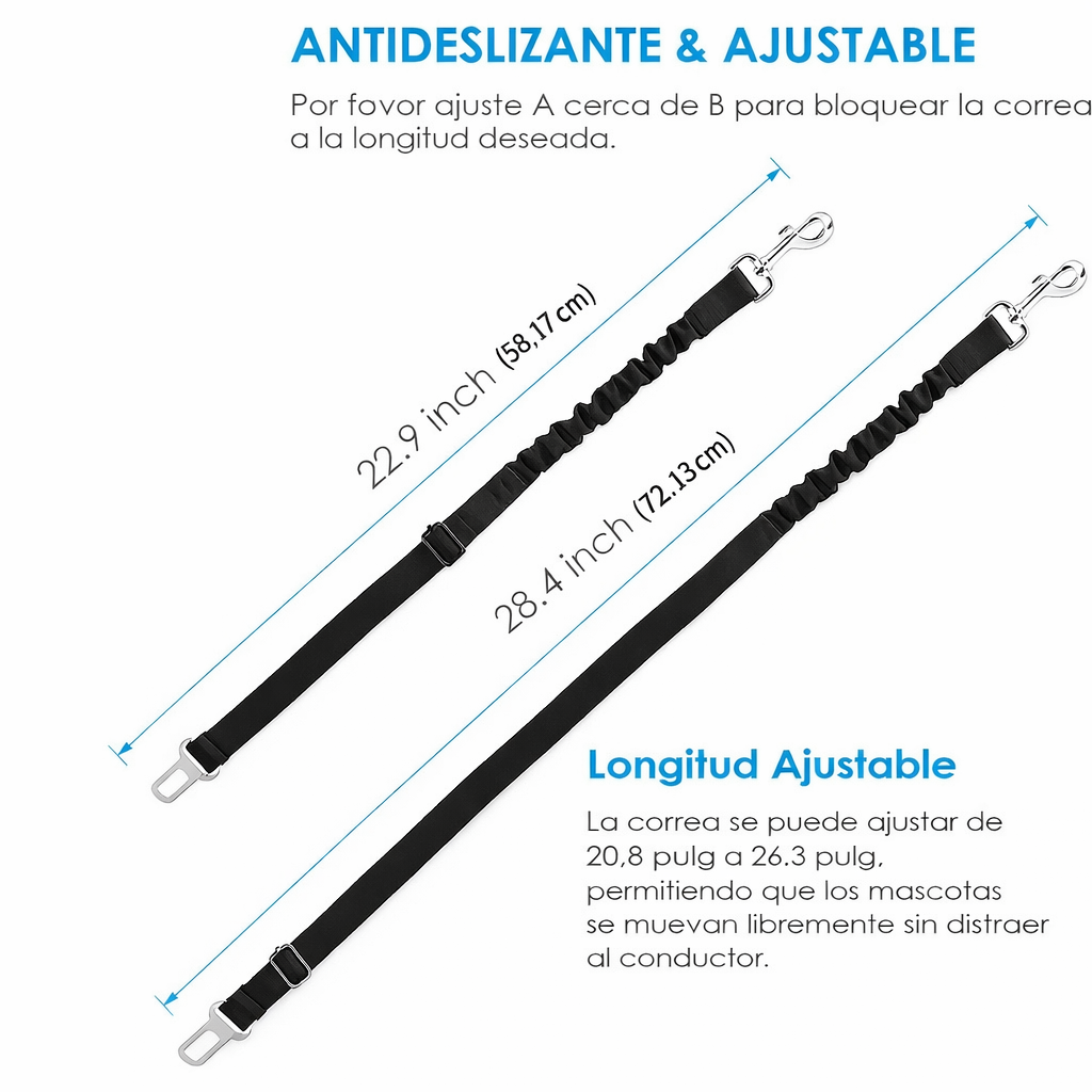 📏 Ajuste fácil y rápido: se adapta a distintos tamaños de perro y asientos; puedes regular la longitud según necesites más o menos libertad controlada.