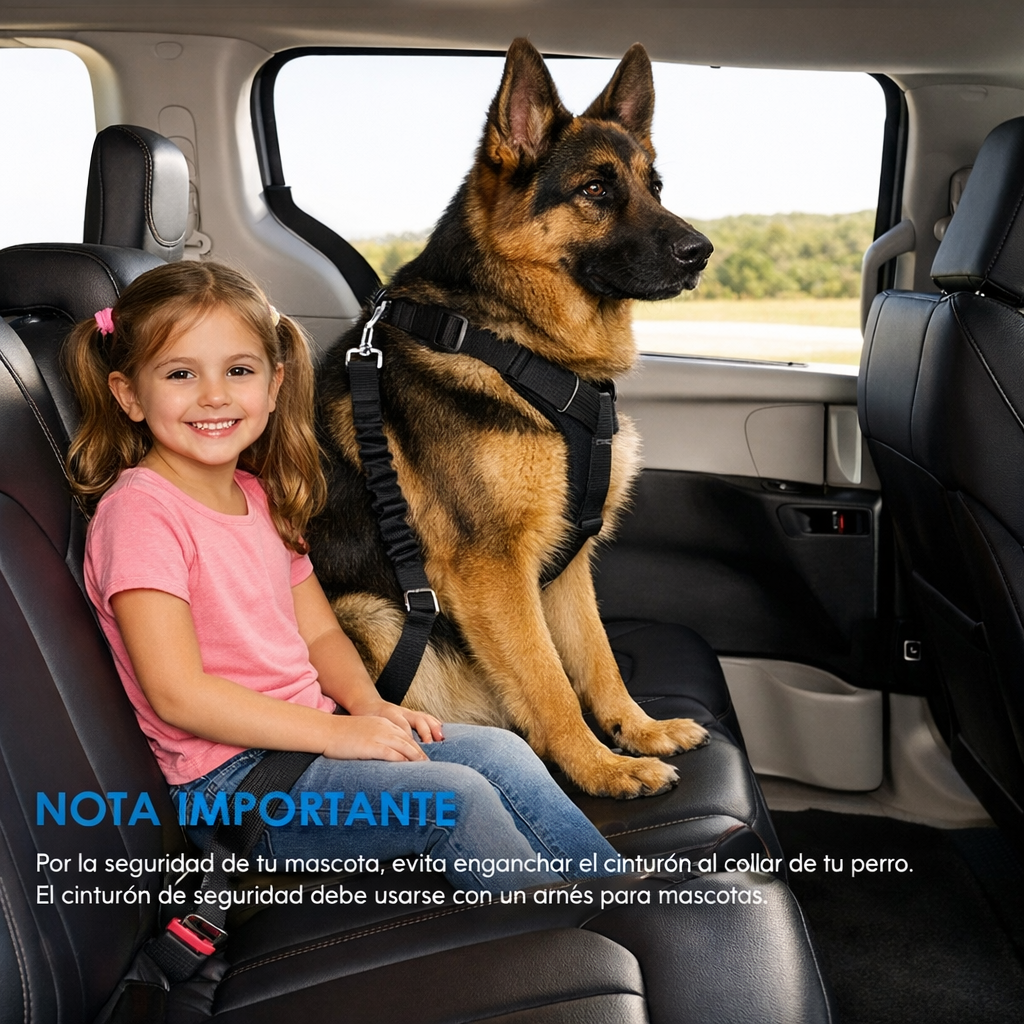 Este producto es un cinturón de seguridad para mascotas (tipo seat belt) diseñado para perros y “todas las etapas” de uso. Fabricado con materiales de nylon o mezclas resistentes, se engancha al vehículo y a un arnés del perro para evitar movimientos peligrosos cuando el coche está en marcha.