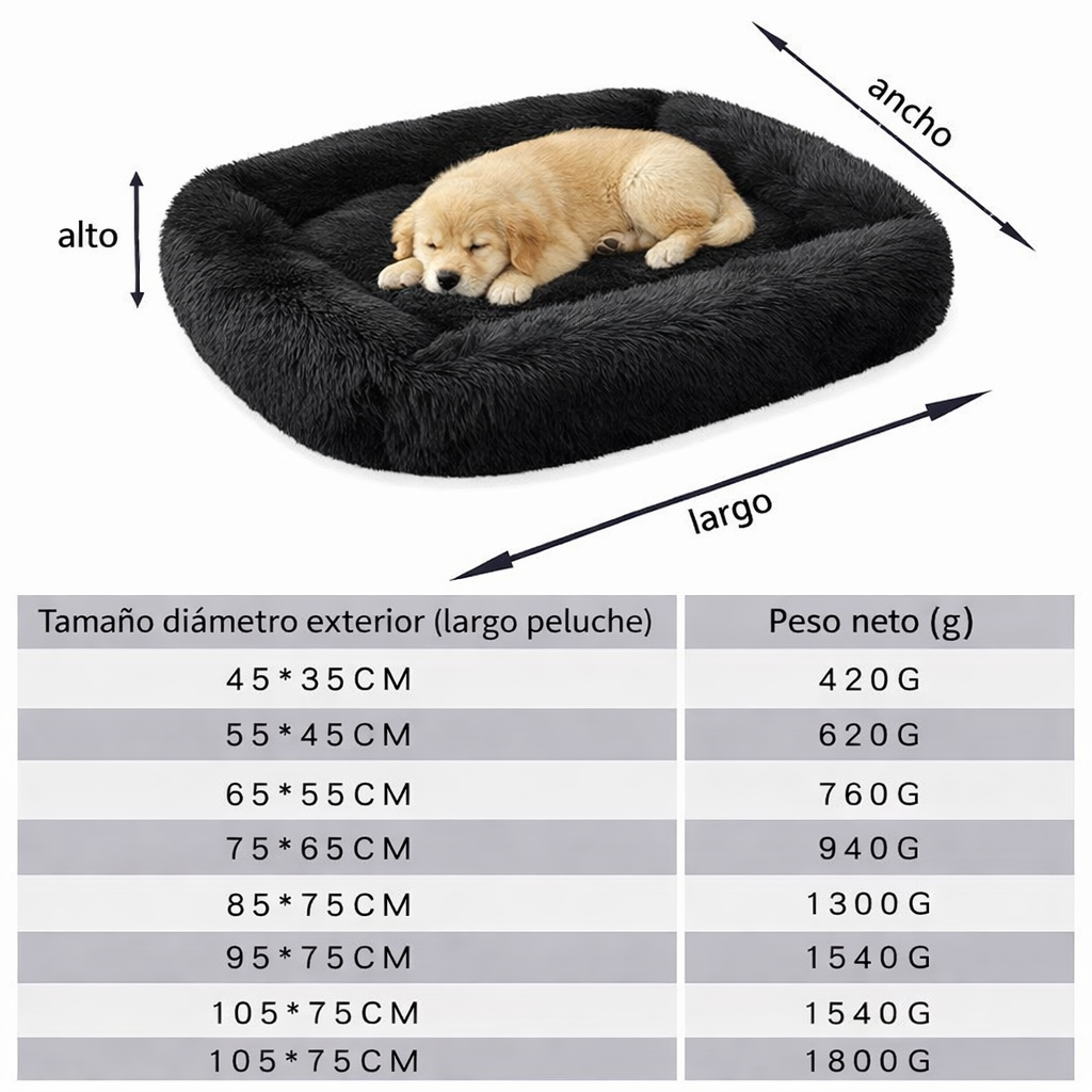 Tu perro no necesita “cualquier cama”. Necesita un lugar donde se sienta seguro, se acurruque y descanse profundo. Esta cama tipo plush/fluffy está pensada para eso: más confort, menos estrés y un rincón favorito que tu perro va a elegir una y otra vez.