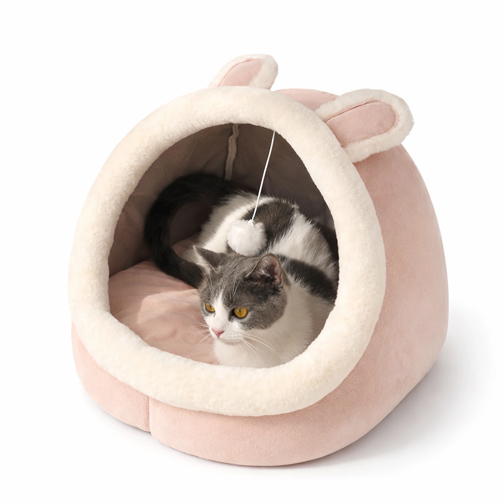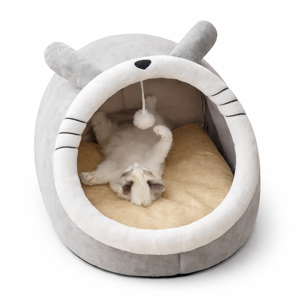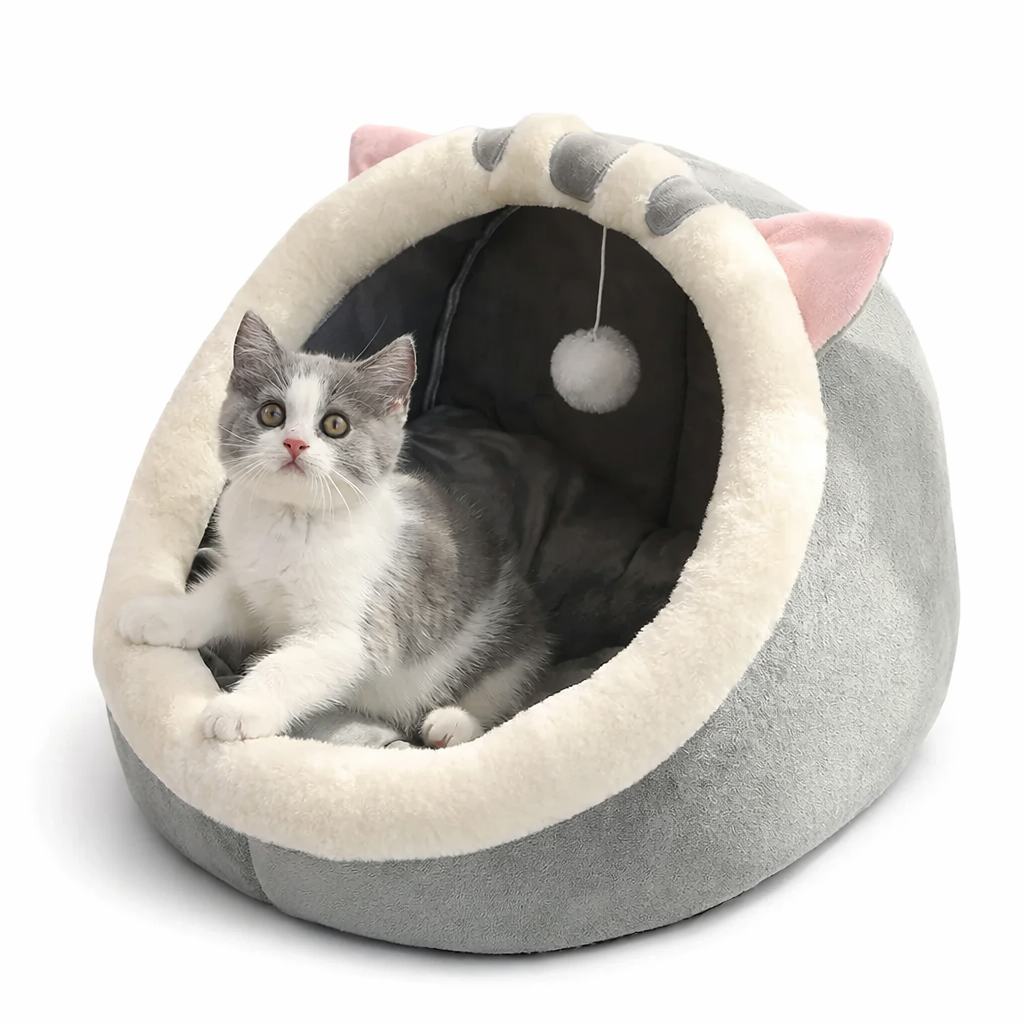 Cama cueva con orejitas para gatos, algodón lavable