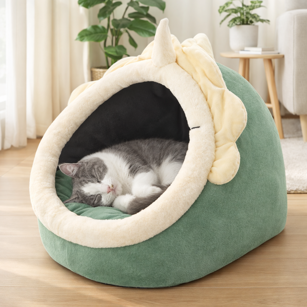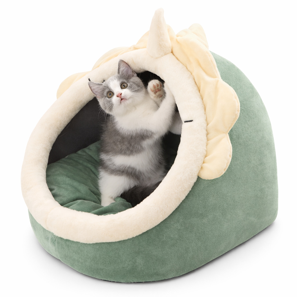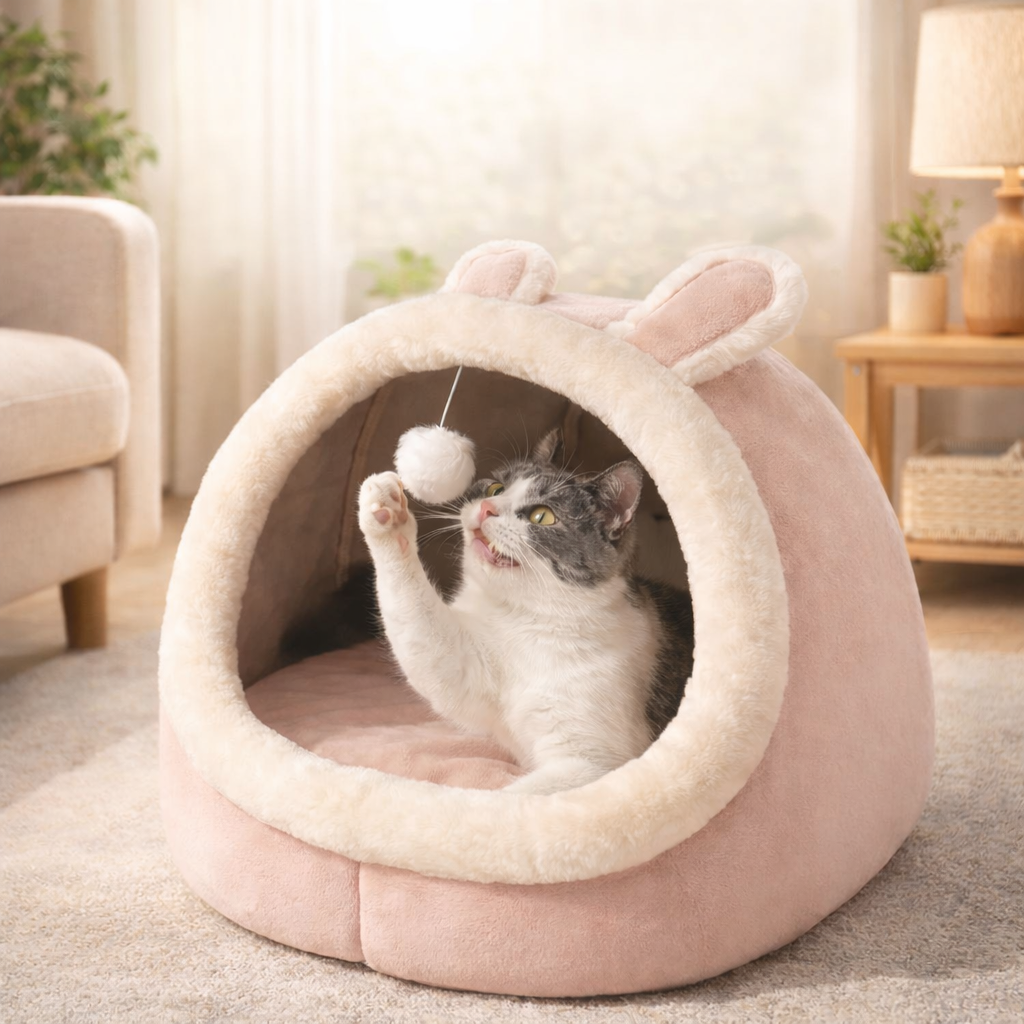 Cama cueva con orejitas para gatos, algodón lavable