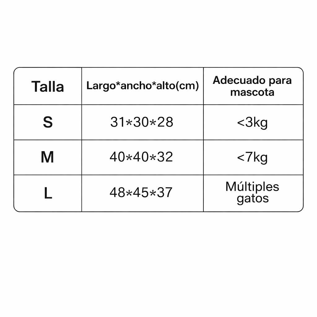 📏 Tres tallas: S <3, M <7, L múltiple